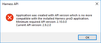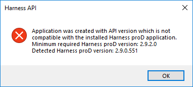 With each new version of Harness proD the API version is also incremented. Since the API checks the version of Harness proD it is connecting to, it might be necessary to update the plugins and standalone applications to work with the new Harness proD version.
