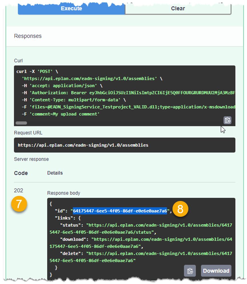 Example of response if no pre-signing key is assigned to the current organization ➔ organization not allowed to sign assemblies.