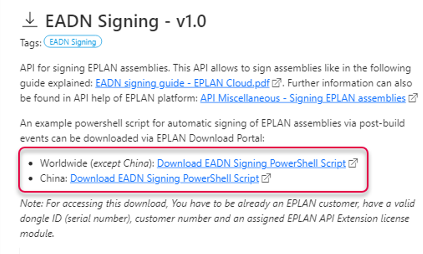 EADN / API Runtime signing uses a concept of combining standard .NET strong-naming with additionally including an Eplan license option to the software.