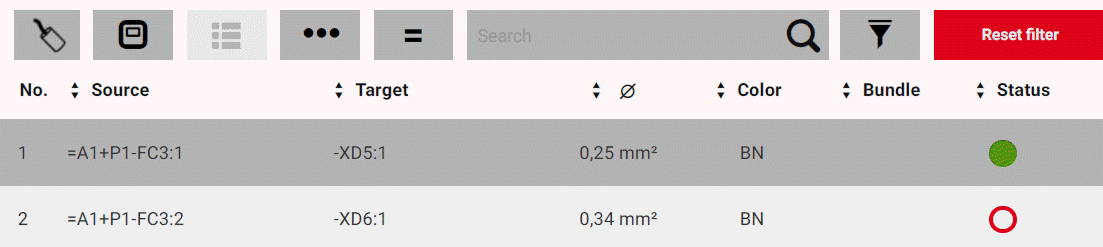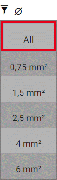 - 在搜索和筛选栏中按下最左方的按钮。(例如,如果当前在连接列表中显示导线(单根芯线),请点击